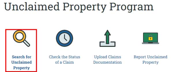 - Now, we go down a little, and in the “Unclaimed Property Program” section we click on “Search for Unclaimed Property”.